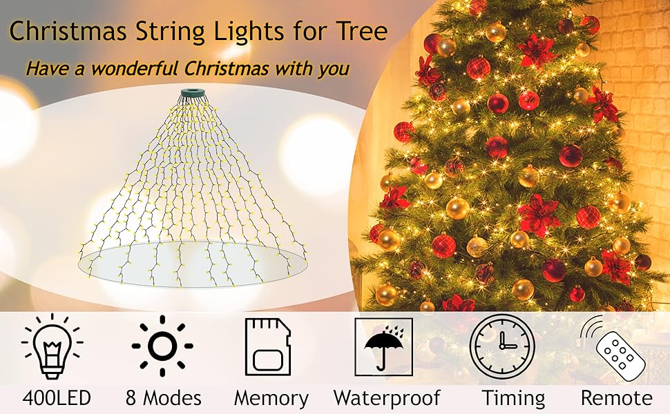 400LEDs: 16 light strings x 25LEDs , a total of 400 LEDs to illuminate your whole Christmas tree!